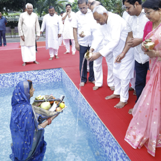 मुख्यमंत्री नीतीश कुमार ने अपने आवास 1 अणे मार्ग पर परिवार के साथ छठी मइया की पूजा की और डूबते सूर्य को अर्घ्य दिया। उन्होंने कहा कि छठ केवल एक धार्मिक उत्सव नहीं, बल्कि लोक आस्था, सामाजिक एकता और सांस्कृतिक समरसता का प्रतीक है। मुख्यमंत्री ने सभी बिहारवासियों को शुभकामनाएं देते हुए कहा कि यह पर्व हमें सादगी, संयम और प्रकृति के प्रति सम्मान का संदेश देता है।