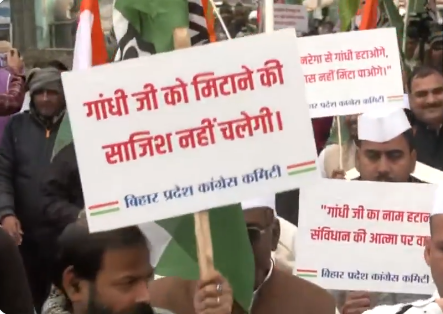 बिहार की राजनीति में मनरेगा (MNREGA Name Change) को लेकर एक बार फिर सियासी तापमान बढ़ गया है। महात्मा गांधी राष्ट्रीय ग्रामीण रोजगार गारंटी योजना के नाम में बदलाव के विरोध में बिहार कांग्रेस ने राजधानी पटना में शक्ति प्रदर्शन किया। सदाकत आश्रम से शुरू हुआ पैदल मार्च गांधी मैदान पहुंचा, जहां महात्मा गांधी की प्रतिमा के समक्ष कांग्रेस नेताओं और कार्यकर्ताओं ने केंद्र सरकार के फैसले के खिलाफ आवाज बुलंद की। इस मार्च के जरिए कांग्रेस ने यह संदेश देने की कोशिश की कि मनरेगा केवल एक सरकारी योजना नहीं, बल्कि ग्रामीण भारत के गरीब और मजदूर वर्ग के जीवन की रीढ़ है।