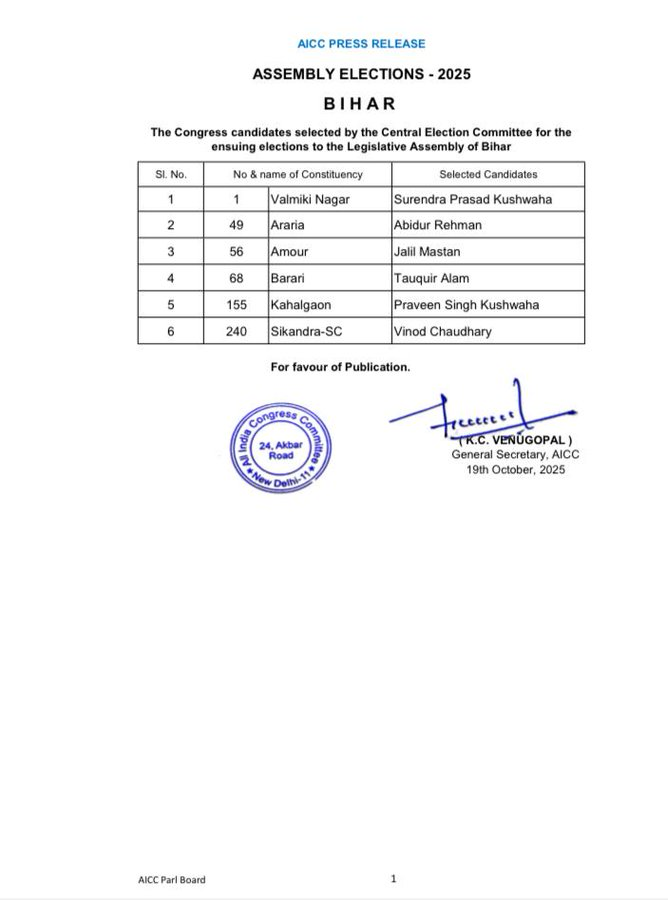 Tags: Bihar assembly election updatesbihar chunav 2025Bihar Chunav Congress listBihar Congress candidates 2025Bihar election 2025 Congress listBihar election latest updateCongress 4th list BiharCongress 4th list newsCongress RJD seat disputeCongress ticket distributionCongress vs RJD BiharMahagathbandhan seat shareMahagathbandhan Seat SharingRJD Congress tussleकहलगांव सीट विवादबिहार चुनाव कांग्रेस उम्मीदवारबिहार राजनीति खबरेंबिहार विधानसभा चुनाव 2025 कांग्रेस लिस्ट
