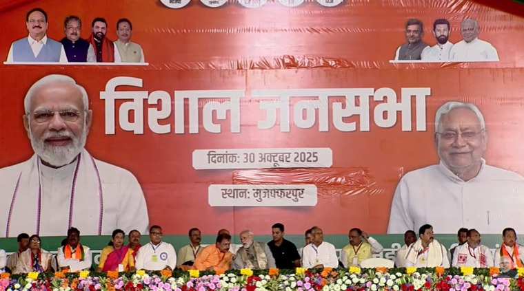 Bihar Chunav 2025 LIVE: प्रधानमंत्री नरेंद्र मोदी मुजफ्फरपुर में चुनावी जनसभा के मंच पर पहुंच गए हैं। मुजफ्फरपुर जिले में प्रधानमंत्री नरेंद्र मोदी की जनसभा में जबरदस्त भीड़ उमड़ी। यह जनसभा मोतीपुर चीनी मिल मैदान में आयोजित की गई है। मंच पर बीजेपी के प्रदेश अध्यक्ष दिलीप जायसवाल, लोजपा के प्रदेश अध्यक्ष, बीजेपी के सभी विधायक और जिले के एनडीए के सभी उम्मीदवार मौजूद हैं।