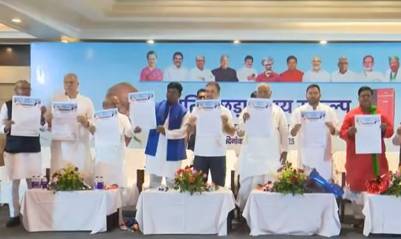 बिहार विधानसभा चुनाव 2025 के लिए महागठबंधन ने अपने चुनावी अभियान को धार देते हुए घोषणा पत्र (Bihar Election 2025 Manifesto) का पहला हिस्सा जारी कर दिया है। पटना के एक होटल में आयोजित इस कार्यक्रम में कांग्रेस नेता राहुल गांधी और राष्ट्रीय जनता दल (आरजेडी) के नेता तेजस्वी यादव ने मिलकर “अति पिछड़ा न्याय संकल्प” नामक संकल्प पत्र पेश किया। इस दौरान कांग्रेस अध्यक्ष मल्लिकार्जुन खरगे, वीआईपी प्रमुख मुकेश सहनी और अति पिछड़ा वर्ग के 100 से अधिक नेता मौजूद रहे।