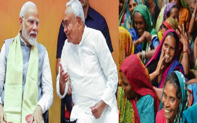 PM Modi launches Mahila Rozgar Yojana via video conference 75 lakh women receive ₹10,000 under Bihar Women Scheme Women empowerment scheme Bihar 2025 Chief Minister Nitish Kumar with PM Modi during scheme launch Self-help group women getting DBT benefit in Bihar