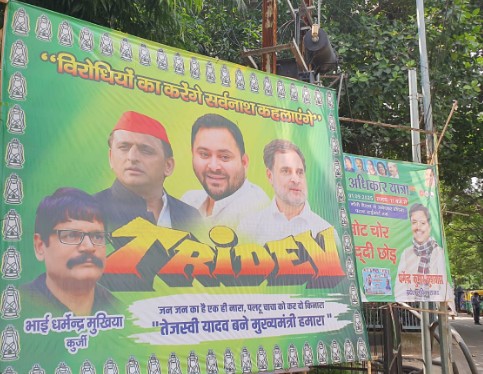 Bihar News बिहार विधानसभा चुनाव को लेकर पटना की सड़कों पर इस समय विपक्ष के तरफ से लगातार पोस्टर जारी कर लोगों की नजर अपने और खींचने में जुटा हुआ है इसी दौरान आज एक नया पोस्टर इंडिया गठबंधन के नेताओं के तरफ से पटना की सड़कों पर लगाई गई है जिसमें कई नए संदेश देने की कोशिश इस पोस्ट के जरिए की गई है। त्रिदेव नाम से पोस्टर लगाए गए हैं, जिनमें तीन युवा नेताओं – तेजस्वी यादव, राहुल गांधी और अखिलेश यादव – की तस्वीरें साथ-साथ नजर आ रही हैं।