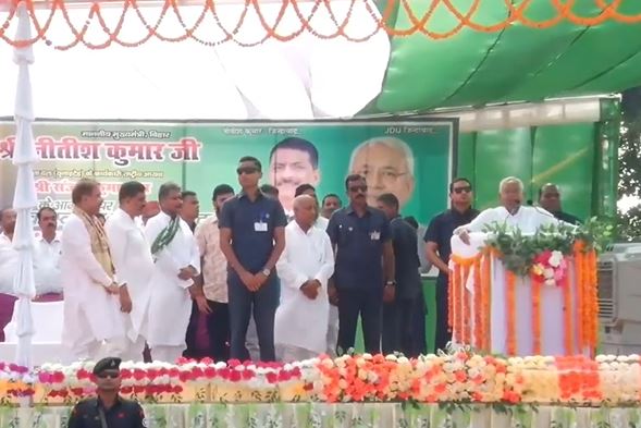 इस दौरान नीतीश कुमार ने मंच पर कैंडिडेट्स को खड़ा करवाकर कहा- इन सब लोगों की छतों पर सोलर पैनल लगवा देगा। भूलना मत। उम्मीदवारों ने भी सिर हिलाकर हामी भरी। CM ने कहा कि, ‘हम 5 पार्टियां साथ मैं हैं। सभी पार्टी के लोग जहां-जहां से खड़े हैं। सभी के कैंडिडेट्स को वोट दीजिए और जिताइए। इसके बाद मुख्यमंत्री ने लोगों से पूछा कि वोट दीजिएगा या नहीं। हाथ उठाकर बताइए वोट दीजिएगा या नहीं। ऐ उधर वाला हाथ नहीं उठाया है… उठाओ।’