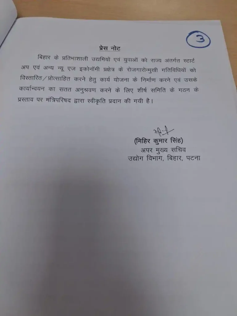 नई आर्थिक वास्तविकताओं में स्टार्टअप सेक्टर की भूमिका महत्वपूर्ण मानी जा रही है। बैठक में यह निर्णय भी लिया गया कि राज्य के युवा उद्यमियों को प्रोत्साहित करने के लिए विशेष नीति लागू की जाएगी। एक उच्च स्तरीय समिति स्टार्टअप के लिए फंडिंग, स्किल-बेस्ड सपोर्ट और ग्रोथ पॉलिसी को जमीन पर उतारने का काम करेगी। इसका उद्देश्य बिहार के स्टार्टअप इकोसिस्टम को राष्ट्रीय स्तर पर प्रतिस्पर्धी और प्रभावी बनाना है।