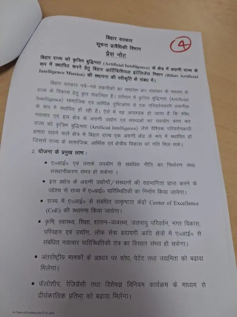 सूचना प्रौद्योगिकी विभाग द्वारा लाए गए बिहार आर्टिफिशियल इंटेलिजेंस मिशन को मंजूरी मिलते ही राज्य डिजिटल ट्रांसफॉर्मेशन की दिशा में निर्णायक कदम उठाता दिख रहा है। इस मिशन का लक्ष्य शिक्षा, स्वास्थ्य, सुरक्षा, ई-गवर्नेंस और सेवाओं में एआई आधारित समाधान लागू करना है। इससे सरकारी कामकाज पारदर्शी, तकनीकी और समयबद्ध हो सकेगा।