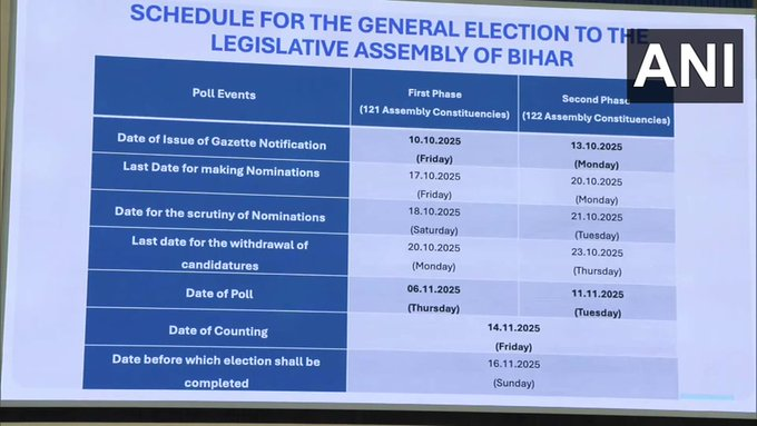 Bihar Election 2025: बज गया चुनावी बिगुल.. दो चरणों में होगा बिहार चुनाव