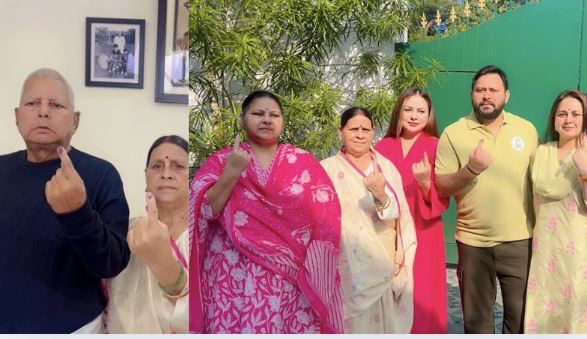बिहार के पूर्व मुख्यमंत्री और राजद सुप्रीमो लालू प्रसाद यादव पहले चरण के मतदान के लिए पटना के एक मतदान केंद्र पर वोट डालने पहुंचे। उनके साथ राबड़ी देवी भी वोट देने पहुंची हैं। राबड़ी देवी ने कहा सभी मतदाताओं से अपील है कि वोट डालें। दोनों बेटों को मां की शुभकामना है। दोनों को आशीर्वाद है।