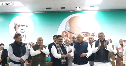 इसके बाद वरिष्ठ नारायण सिंह ने सदस्यता ग्रहण की। जिसके बाद प्रदेश अध्यक्ष उमेश कुशवाहा को सीएम नीतीश ने सदस्यता ग्रहण की। इस दौरान सीएम नीतीश जिंदाबाद के नारे लगते रहे। वहीं संजय झा ने सीएम नीतीश को पार्टी की ओर से वर्ल्ड बुक ऑफ रिकॉर्ड्स, लंदन में सीएम नीतीश का नाम दर्ज होने पर बधाई भी दी।