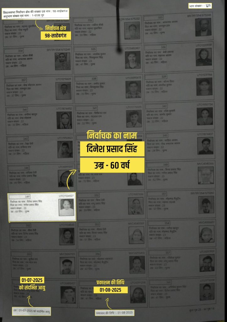 तेजस्वी यादव के मुताबिक, दिनेश सिंह के पास EPIC ID- REM0933267 और EPIC ID- UTO1134527 दोनों मौजूद हैं। ये आईडी दो अलग-अलग जिलों और लोकसभा निर्वाचन क्षेत्रों से जुड़ी हैं, जिनमें अलग-अलग विधानसभा क्षेत्रों के वोट भी शामिल हैं। तेजस्वी ने यह भी दावा किया कि विशेष गहन पुनरीक्षण (SIR) के दौरान दिनेश सिंह ने दो अलग-अलग गणना फॉर्म भरे और उन पर अलग-अलग हस्ताक्षर किए। सवाल यह भी उठाया गया कि क्या चुनाव आयोग के अधिकारियों ने इन फॉर्म पर साइन कर यह प्रमाणित किया कि एमएलसी ने खुद हस्ताक्षर किए हैं।