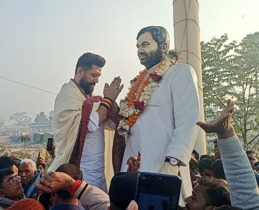 लोक जनशक्ति पार्टी (आर) के राष्ट्रीय अध्यक्ष सह केंद्रीय मंत्री चिराग पासवान (Chirag Paswan Hajipur) ने नववर्ष में पहली बार अपने संसदीय क्षेत्र हाजीपुर का दौरा किया। इस दौरान उन्होंने सर्किट हाउस के समीप अपने पिता पद्मभूषण से सम्मानित स्व. रामविलास पासवान की आदमकद प्रतिमा पर माल्यार्पण कर आशीर्वाद लिया। बढ़ती ठंड को देखते हुए केंद्रीय मंत्री ने गरीब, दलित, शोषित और असहाय लोगों के बीच कंबल का वितरण किया और क्षेत्रवासियों को नववर्ष की शुभकामनाएं दीं।