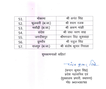 मीडिया में यह भी कयास लगाए जा रहे थे कि मंत्री महेश्वर हजारी का टिकट कट सकता है, लेकिन पार्टी ने उन्हें फिर से कल्याणपुर से प्रत्याशी बनाकर सभी अटकलों को खारिज कर दिया। वहीं, मंत्री रत्नेश सादा को भी सोनबरसा से टिकट मिल गया है, जो यह दर्शाता है कि पार्टी ने मौजूदा मंत्रियों पर भरोसा कायम रखा है।