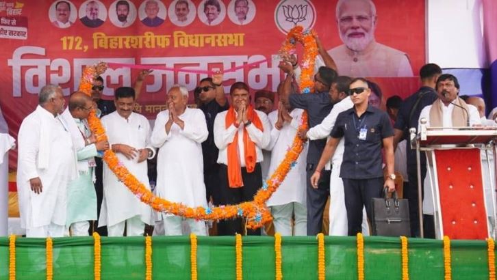 मुख्यमंत्री ने अस्थावां में जदयू के डॉ. जितेंद्र कुमार, बिहार शरीफ में भाजपा के डॉ. सुनील कुमार, नालंदा में श्रवण कुमार, हिलसा में कृष्ण मुरारी शरण, इस्लामपुर में रुहैल रंजन और हरनौत में हरीनारायण सिंह के लिए जनता से वोट देने की अपील की।