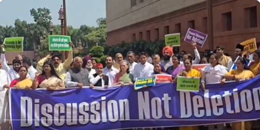 कांग्रेस का कहना है कि बिहार में SIR के नाम पर वोट चोरी का खेल जारी है। BJP सरकार चुनाव आयोग के साथ मिलकर बिहार के लोगों से वोटिंग का अधिकार छीन लेना चाहती है। ये सरासर अन्याय है, जिसके खिलाफ हम संसद में चर्चा चाहते हैं। लेकिन मोदी सरकार सवालों से बचने के लिए बार-बार सदन स्थगित करवा दे रही है- चर्चा से भाग रही है। आज INDIA गठबंधन के सांसदों ने मकर द्वार पर सरकार के इस लोकतंत्र विरोधी कदम का पुरजोर विरोध किया। सरकार संसद में SIR पर चर्चा कराए, अपनी जिम्मेदारी निभाए।
