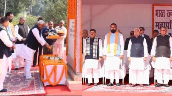 राजधानी पटना में आज बाबा साहब डॉ. भीमराव अंबेडकर के परिनिर्वाण दिवस (Ambedkar Parinirvan Diwas Patna) पर पटना हाई कोर्ट के पास स्थित अम्बेडकर पार्क में आयोजित श्रद्धांजलि समारोह में मुख्यमंत्री नीतीश कुमार ने बाबा साहब की प्रतिमा पर पुष्पांजलि अर्पित की। इस अवसर पर बिहार विधानसभा अध्यक्ष डॉ. प्रेम कुमार, दोनों उपमुख्यमंत्री सम्राट चौधरी व विजय कुमार सिन्हा सहित कई मंत्री और जनप्रतिनिधि उपस्थित रहे। पूरे परिसर में संविधान निर्माता के प्रति सम्मान और उनके विचारों को आगे बढ़ाने का संदेश साफ दिखाई दिया।