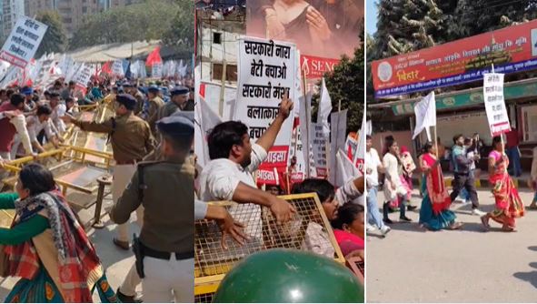 मार्च के दौरान महिलाओं के हाथों में पोस्टर थे, जिन पर सरकार की कथनी-करनी पर सवाल उठाए गए। ‘बेटी बचाओ’ जैसे अभियानों और ज़मीनी हकीकत के बीच बढ़ते अंतर को लेकर नारे गूंजते रहे। प्रदर्शनकारियों का आरोप है कि राज्य में महिलाओं, छात्राओं और बच्चियों के खिलाफ अपराध बढ़ रहे हैं और कई मामलों में प्रशासनिक संरक्षण की आशंका जताई जा रही है। उनका कहना है कि कानून-व्यवस्था की ढिलाई ने अपराधियों के हौसले बढ़ाए हैं, जिससे पीड़ित परिवारों को न्याय के लिए सड़क पर उतरना पड़ रहा है।
