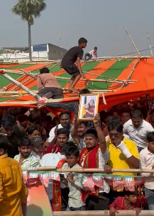 पवन सिंह के मंच पर पहुँचते ही समर्थकों में उत्साह का माहौल बन गया। लोग छतों, गैलरियों और पंडाल की ऊँची जगहों पर चढ़कर पवन सिंह की झलक पाने को बेताब दिखे। भीड़ बढ़ने और कुछ लोगों के पंडाल पर चढ़ने के कारण अचानक पंडाल का एक हिस्सा धराशायी हो गया। गनीमत रही कि इस घटना में कोई हताहत नहीं हुआ। मौके पर मौजूद सुरक्षाकर्मियों और स्थानीय प्रशासन ने स्थिति को तुरंत संभाल लिया और भीड़ को शांत किया।