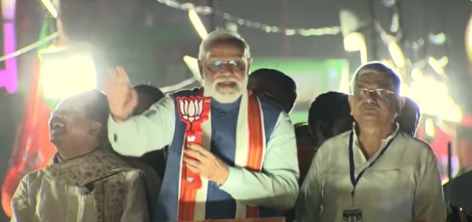 PM Modi Patna Roadshow Image, Narendra Modi Bihar Visit Photo, Modi Roadshow Dinkar Chowk Picture