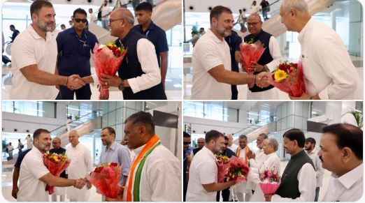 CWC Meeting LIVE: कांग्रेस की वर्किंग कमेटी की बैठक में शामिल होने के लिए राहुल गांधी पटना पहुंचे। उनके एयरपोर्ट पहुंचते ही समर्थकों की भारी भीड़ जुट गई। कांग्रेस के बिहार प्रदेश अध्यक्ष सहित कई नेताओं ने पटना एयरपोर्ट पर उनका स्वागत किया। पटना एयरपोर्ट से सीधा राहुल गांधी सदाकत आश्रम पहुँचे, जहाँ उन्होंने महात्मा गाँधी और इंदिरा गाँधी की प्रतिमा पे मलायर्पण किया। उसके बाद CWC की बैठक के लिये सभी नेताओं के साथ अंदर चले गए।