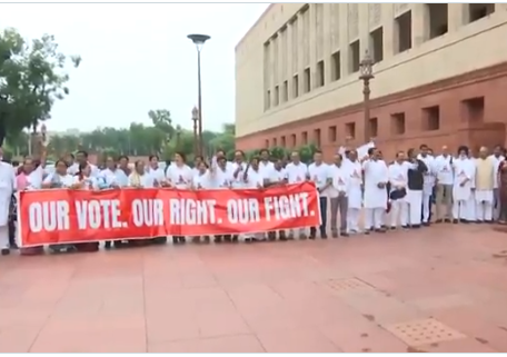 यह विरोध प्रदर्शन ऐसे समय में हो रहा है जब विशेष गहन पुनरीक्षण (एसआईआर) मुद्दे पर संसद की कार्यवाही बाधित रही। सोमवार को, बिहार में कथित अनियमितताओं के विरोध में संसद से चुनाव आयोग कार्यालय तक मार्च करते समय कांग्रेस नेता राहुल गांधी और प्रियंका गांधी और कई अन्य भारतीय ब्लॉक सांसदों को दिल्ली पुलिस ने हिरासत में ले लिया।