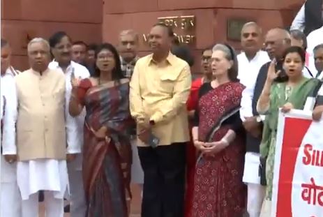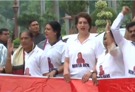 कथित मतदाता धोखाधड़ी और एसआईआर मुद्दों पर विपक्षी गठबंधन इंडिया के नेताओं का विरोध जारी है। सोनिया गांधी, मल्लिकार्जुन खड़गे और दोनों सदनों के विपक्षी सांसदों सहित वरिष्ठ नेताओं ने संसद के द्वार के सामने विरोध प्रदर्शन किया। प्रियंका गांधी वाड्रा समेत तमाम विपक्षी सांसदों को ‘मिंता देवी’ नाम की टी-शर्ट पहने देखा गया, जो कथित तौर पर चुनाव आयोग की मतदाता सूची में 124 साल की मतदाता के रूप में सूचीबद्ध हैं।