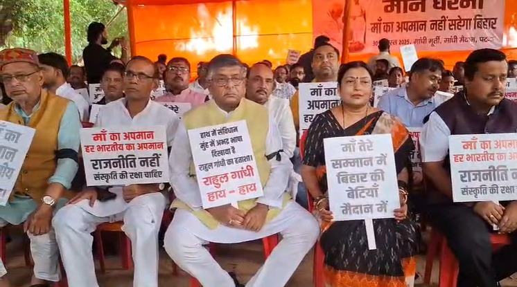 प्रधानमंत्री नरेंद्र मोदी पर दरभंगा में की गई अभद्र टिप्पणी और कांग्रेस कार्यालय में भाजपा कार्यकर्ताओं की पिटाई मामले को लेकर राजधानी पटना में भारतीय जनता पार्टी ने बड़ा प्रदर्शन किया। सोमवार को भाजपा के वरिष्ठ नेताओं और बड़ी संख्या में कार्यकर्ताओं ने गांधी मैदान स्थित गांधी प्रतिमा के समक्ष मौन धरना दिया।