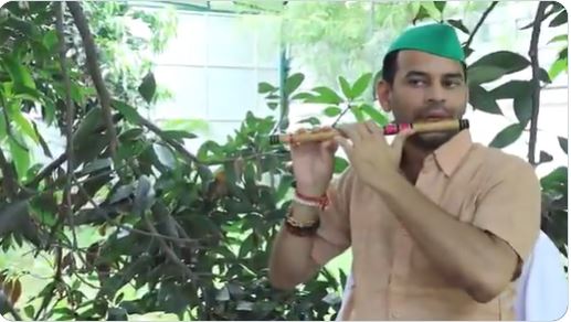 राष्ट्रीय जनता दल (राजद) सुप्रीमो लालू यादव के बड़े बेटे और बिहार सरकार के पूर्व मंत्री तेज प्रताप यादव का बांसुरी बजाते एक वीडियो सोशल मीडिया पर तेजी से वायरल हो रहा है। यह वीडियो कृष्ण जन्माष्टमी के अवसर पर जारी किया गया है। वीडियो में तेज प्रताप यादव बांसुरी बजाते हुए दिखाई दे रहे हैं। टीम तेजप्रताप यादव के सोशल मीडिया हैंडल से यह वीडियो जारी किया गया है।