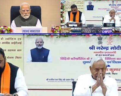बता दें कि प्रधानमंत्री नरेंद्र मोदी ने शनिवार को 62,000 करोड़ रुपये से अधिक की विभिन्न युवा-केंद्रित पहलों का शनिवार को अनावरण किया। वीडियो कॉन्फ्रेंसिग के जरिए इस कार्यक्रम में बिहार के मुख्यमंत्री नीतीश कुमार और डिप्टी सीएम सम्राट चौधरी भी जुड़े थे। पीएम मोदी के इस कार्यक्रम में जुड़े बिहार सीएम नीतीश कुमार का एक वीडियो सोशल मीडिया पर वायरल हो रहा है। इस वीडियो में सम्राट चौधरी के साथ बैठे नीतीश कुमार करीब 38 सेकंड तक पीएम मोदी को हाथ जोड़ बैठे दिखे। नीतीश का इतनी देर तक पीएम मोदी को हाथ जोड़े रहना थोड़ा असामान्य लग रहा है।