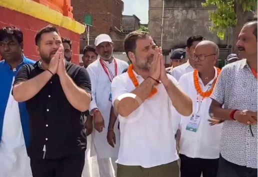 Voter Adhikar Bihar Yatra: बिहार में राहुल-गांधी और तेजस्वी यादव वोटर अधिकार यात्रा पर हैं। उनकी यात्रा के दूसरे दिन विपक्षी नेताओं का काफिला देव सूर्य मंदिर में दर्शन के लिए पहुंचा है। यहां विपक्ष के नेताओं ने मंदिर की परिक्रमा कर पूजा अर्चना की। इसके बाद गयाजी में जाने का कार्यक्रम है। जहां शाम के वक्त जनता को संबोधित करेंगे। रविवार को सासाराम से यात्रा की शुरुआत हुई और मात्र छह घंटे में करीब 60 किलोमीटर का पैदल सफर तय कर राहुल गांधी औरंगाबाद के कुटुंबा पहुंचे। रात का विश्राम उन्होंने बभंडी ग्राउंड में किया और सोमवार को यात्रा का दूसरा चरण गयाजी के लिए बढ़ेगा।