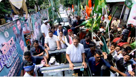 सारण जिले में पहुंची राहुल-तेजस्वी-अखिलेश यादव की वोटर अधिकार यात्रा.. बैंड बाजे से हुआ स्वागत